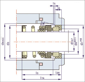 108系列采用橡膠波紋管做次級密封,并兼?zhèn)鬟f扭矩力,通過雙補(bǔ)償環(huán)背靠組對,可成為HQ208密封,常用于潛水泵。